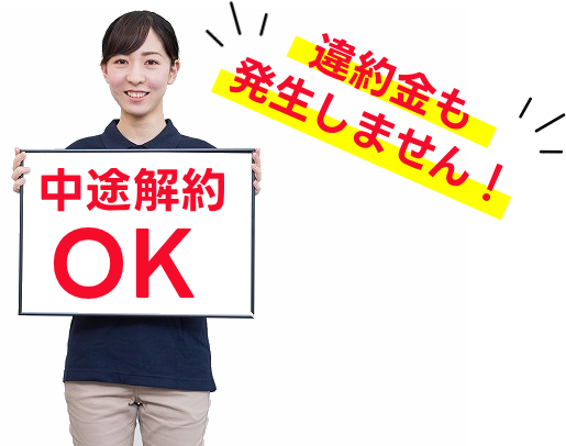 ただし、中途解約も可能です。その場合も違約金は発生しません。まずはお試しで1~2ヶ月利用いただき、その後問題なければ継続、といった形でも構いません。