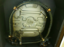 外装・各種の部品を取り外すと熱交換器があらわれます。